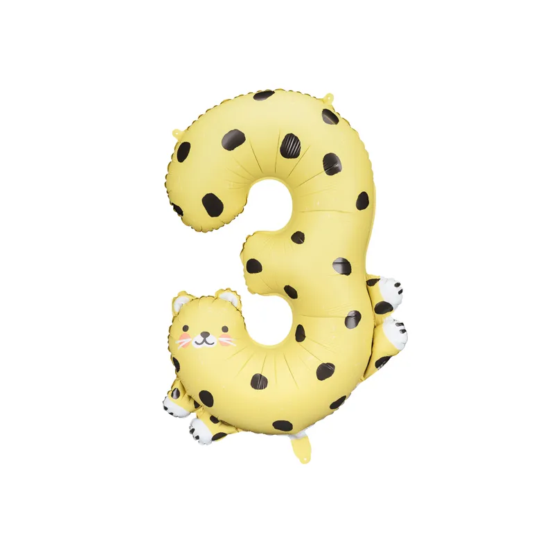 ⭐ balon foliowy - Cyfra 3 z motywem geparda (ok. 68x98 cm) do napełnienia powietrzem lub helem