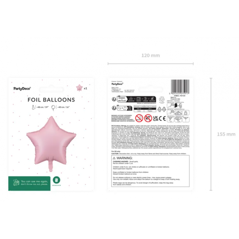 BALON FOLIOWY MATOWY GWIAZDKA - RÓŻOWY⭐