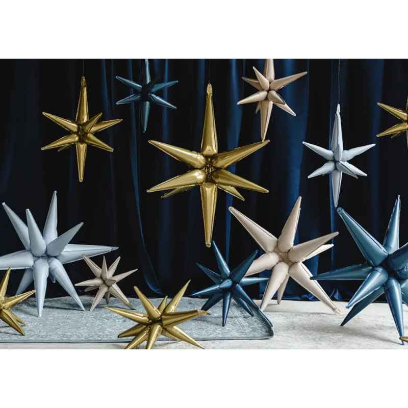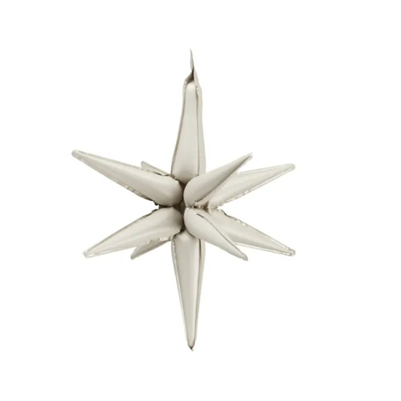 Balon foliowy matowy w kształcie gwiazdy 3D w kolorze beżowym.