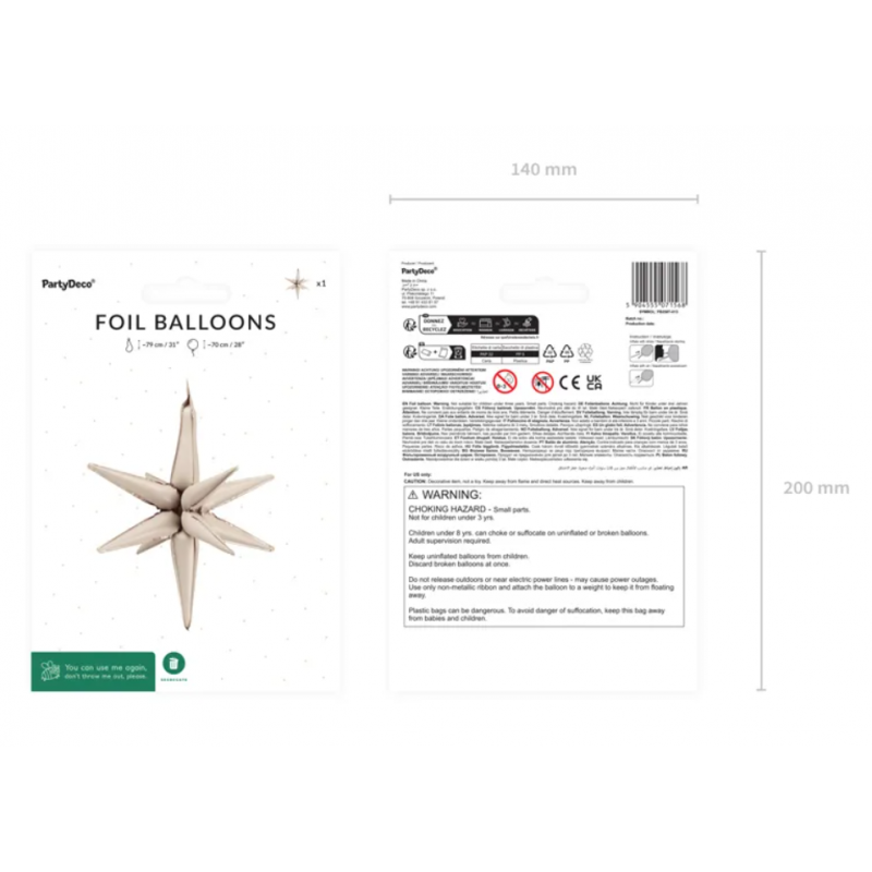 BALON FOLIOWY GWIAZDA 3D - BEŻOWY⭐