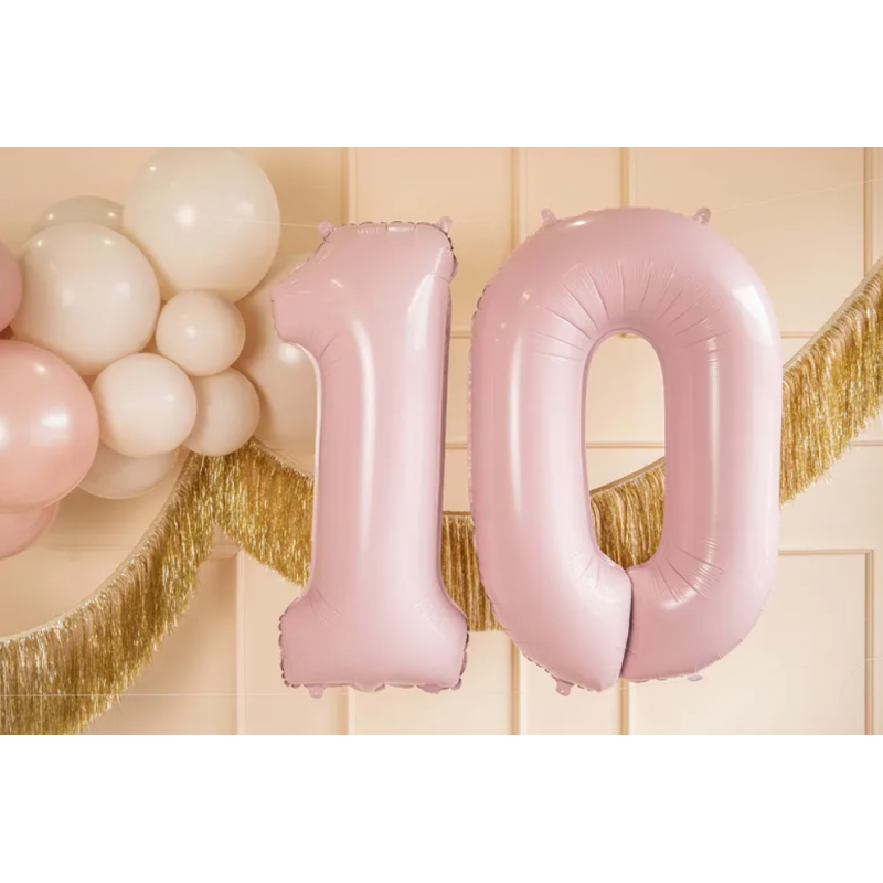 Balon foliowy pastelowy w kształcie 0 w kolorze jasnoróżowym.