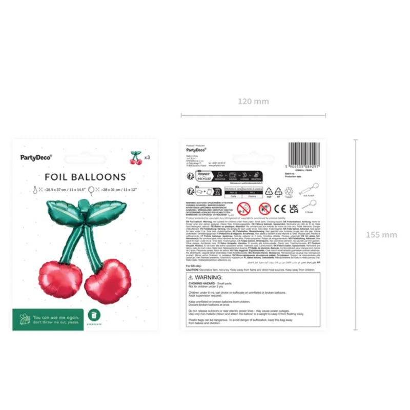 Balony foliowe do girland Wisienki 28x31 cm - 3 sztuki