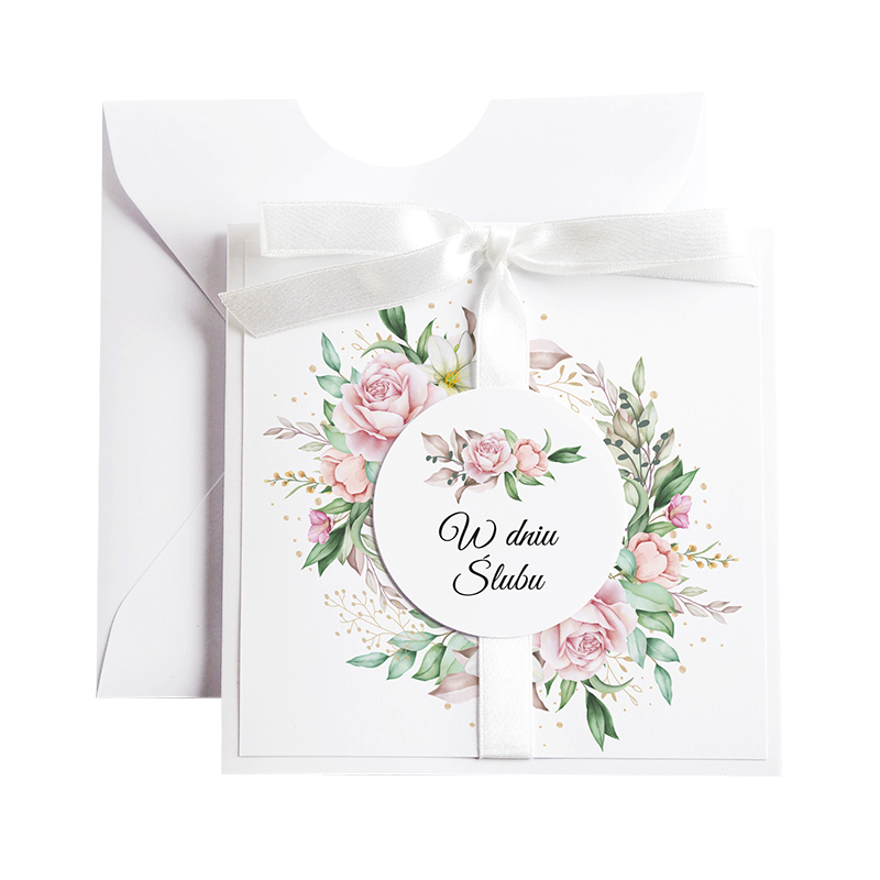 Do kartki w komplecie dołączamy białą kopertę