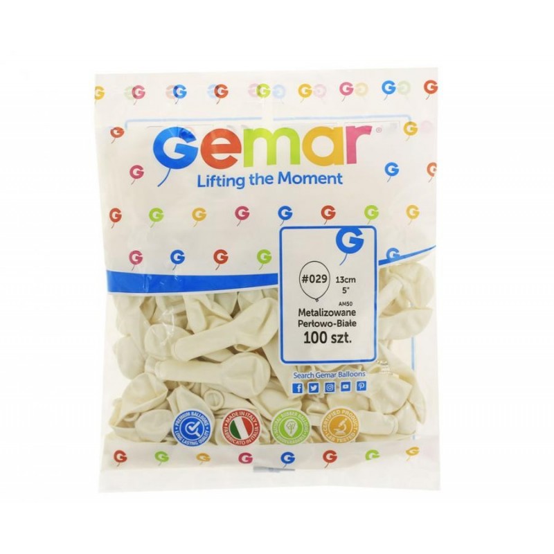 Balony metaliczne Gemar 13 cm - 5" - metaliczne perłowo-białe Metallic White AM50/029 - 100 sztuk