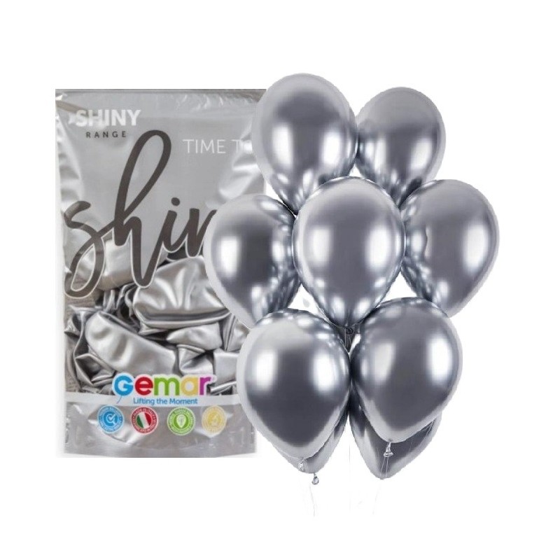 Balony GEMAR 33 cm - 13" srebrne SHINY SILVER GB120/89 - 50 sztuk