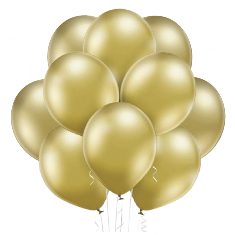 Zestaw 10 sztuk wysokiej jakości balonów lateksowych w kolorze złotym.