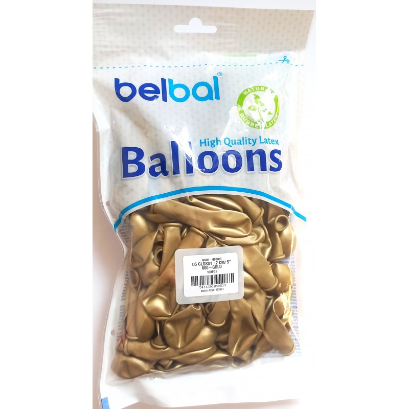 ⭐Balony BELBAL 12 cm - Błyszczące złote Glossy Gold D5/GG01-600 - 100 sztuk⭐