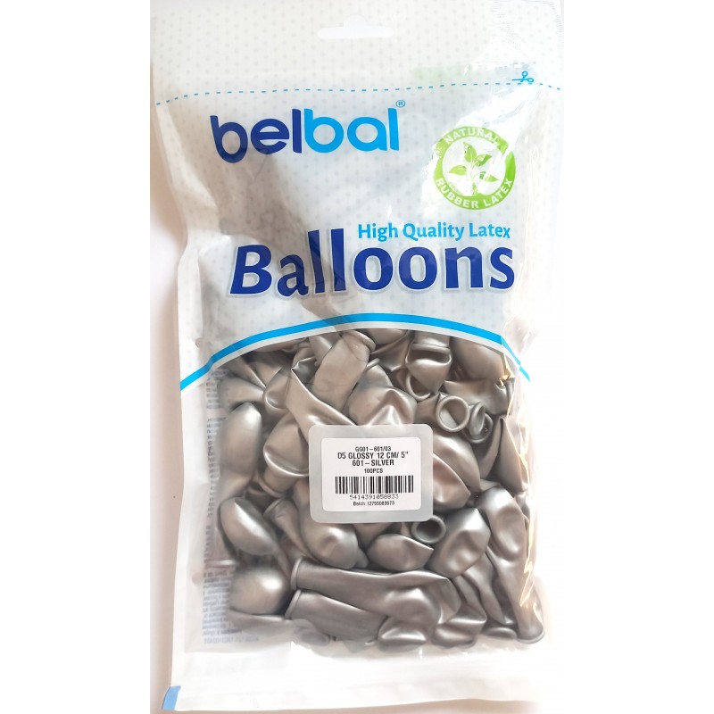 ⭐Balony BELBAL 12 cm - Błyszczące srebrne Glossy Silver D5/GG01-601 - 100 sztuk⭐
