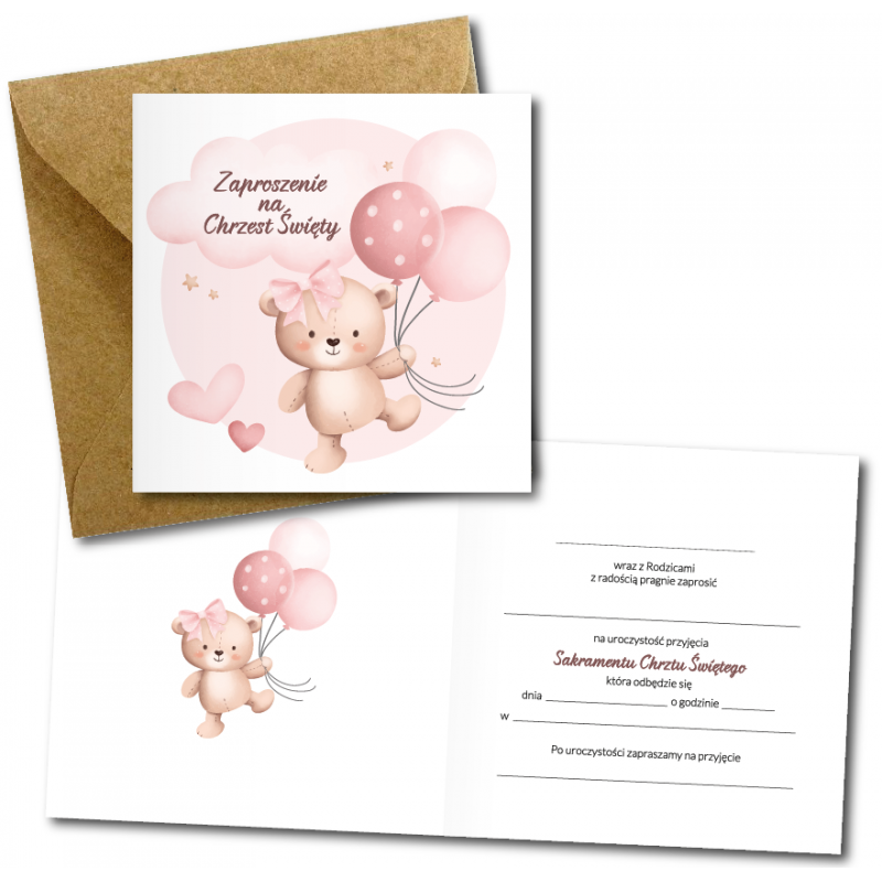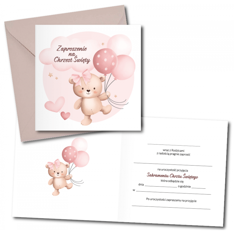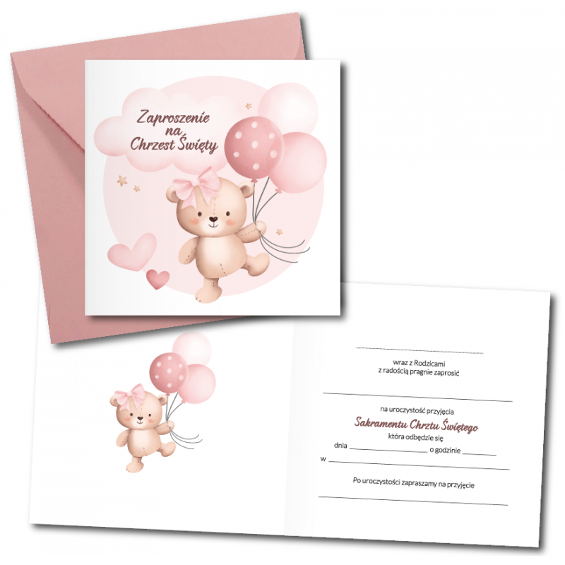 Zaproszenie do wypisania na CHRZEST ŚWIĘTY - RÓŻOWY MIŚ