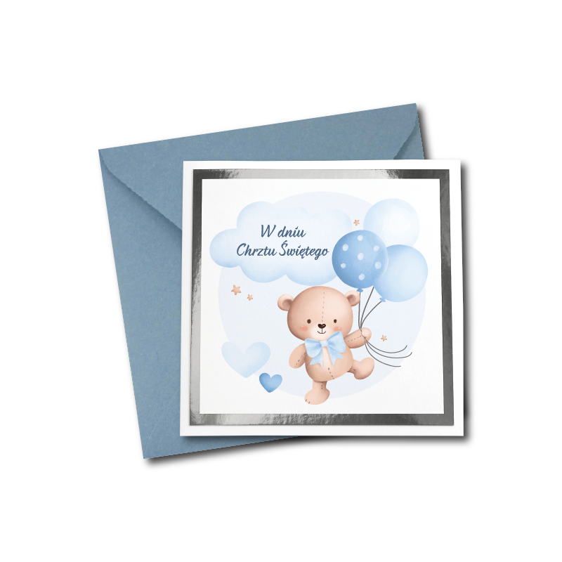 ⭐Kartka okolicznościowa na CHRZEST ŚWIĘTY - NIEBIESKI MIŚ⭐