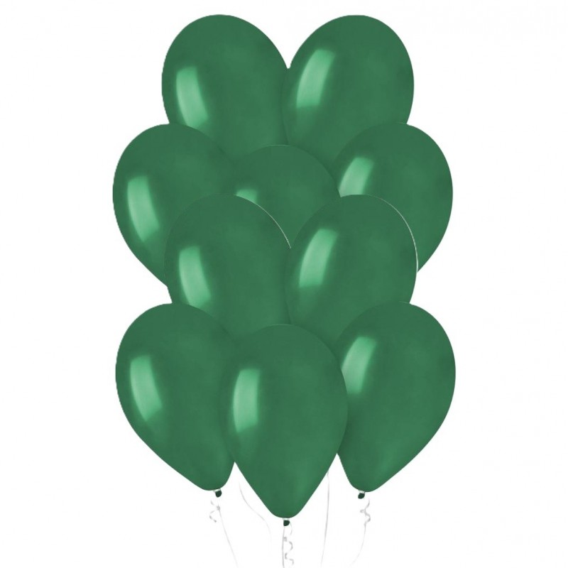 Zestaw 10 sztuk wysokiej jakości balonów lateksowych w kolorze butelkowej zieleni.
