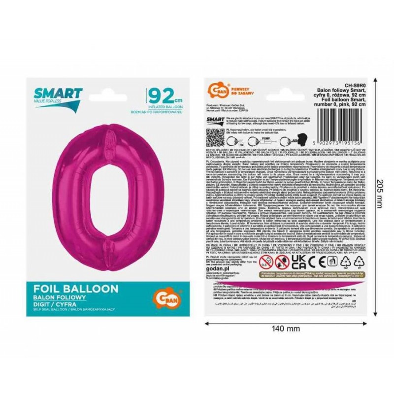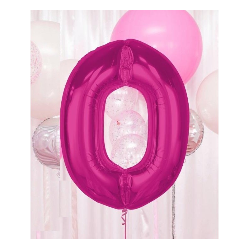 ⭐ Balon foliowy Cyfra 0 - ok. 92 cm po napompowaniu - różowy - 1 sztuka