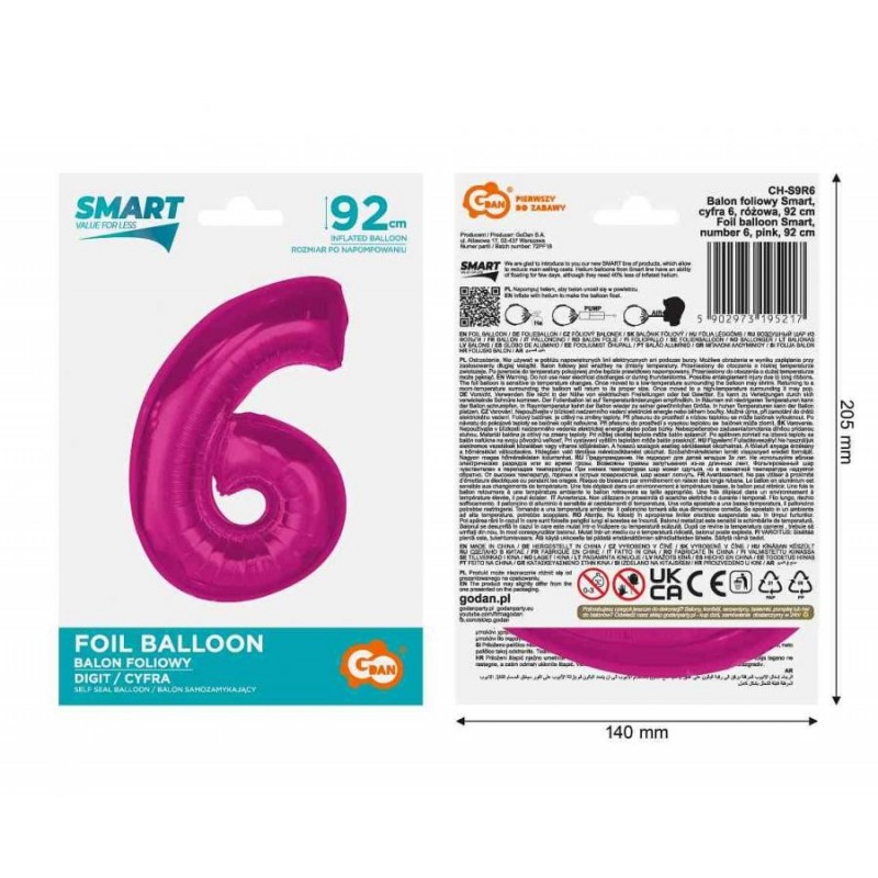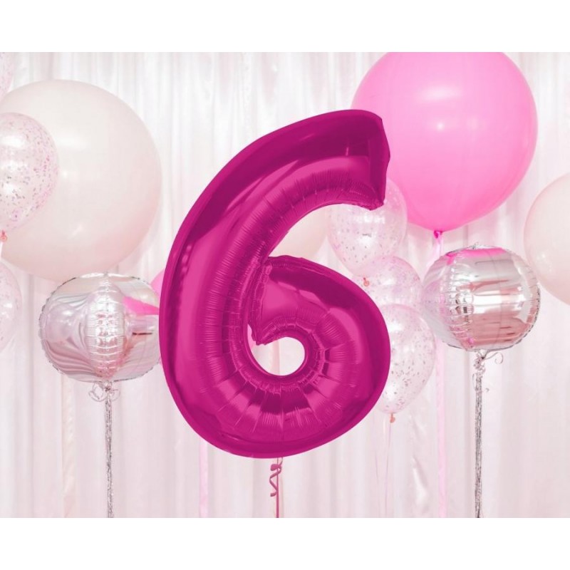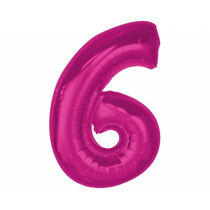 ⭐ Balon foliowy Cyfra 6 - ok. 92 cm po napompowaniu - różowy - 1 sztuka