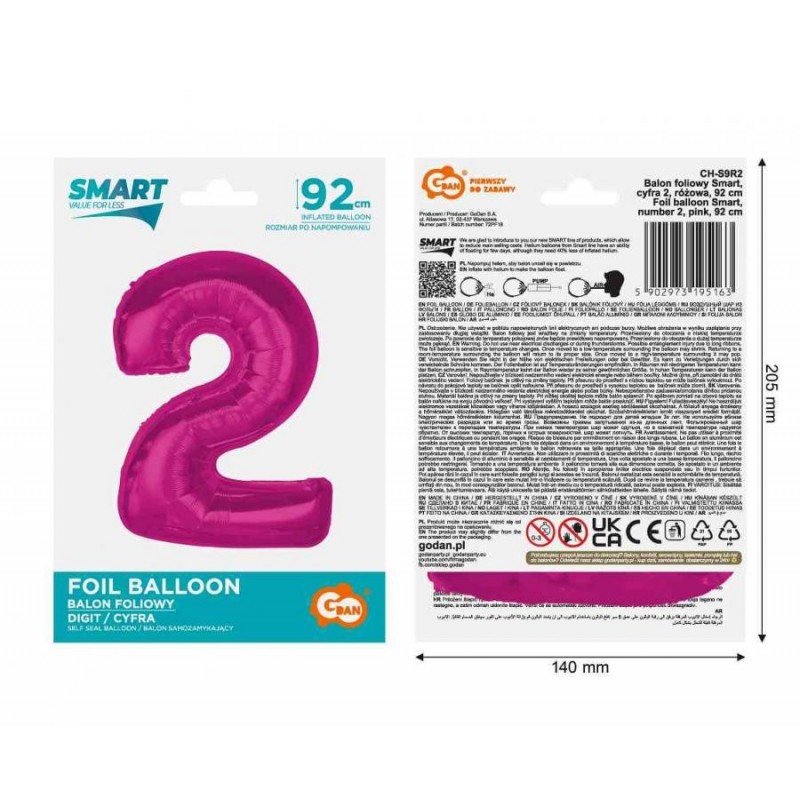⭐ Balon foliowy Cyfra 2 - ok. 92 cm po napompowaniu - różowy - 2 sztuki
