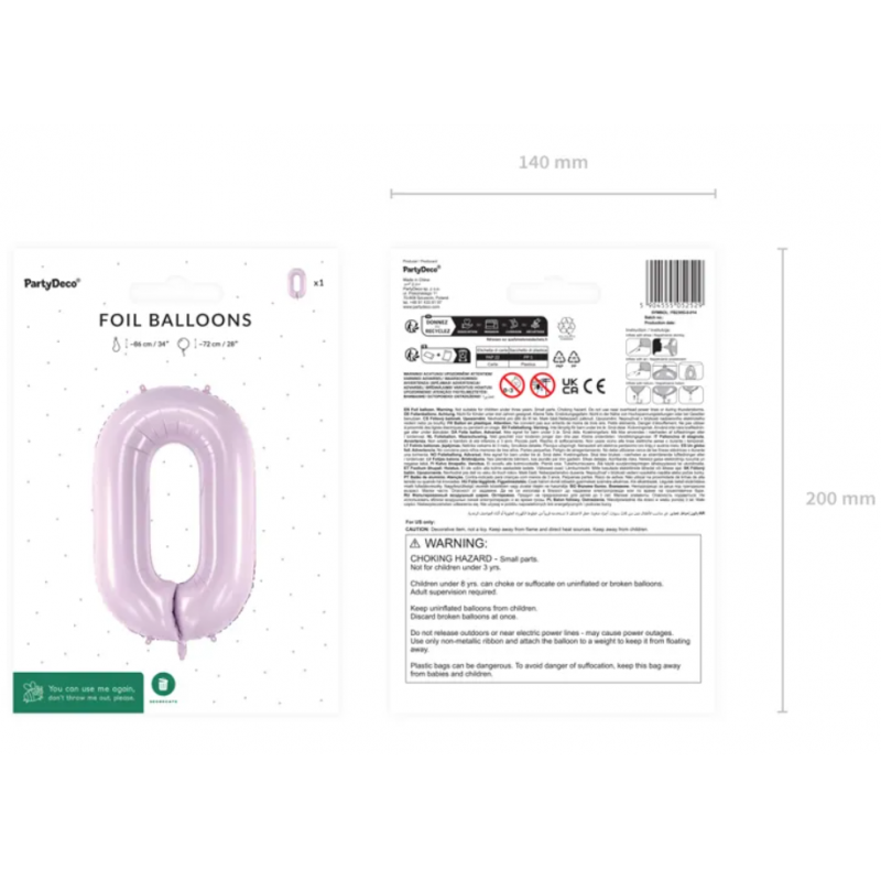 ⭐ Balon foliowy Cyfra 0 - ok. 72 cm (ok. 86 cm przed napompowaniem) - fiolet - 1 sztuka
