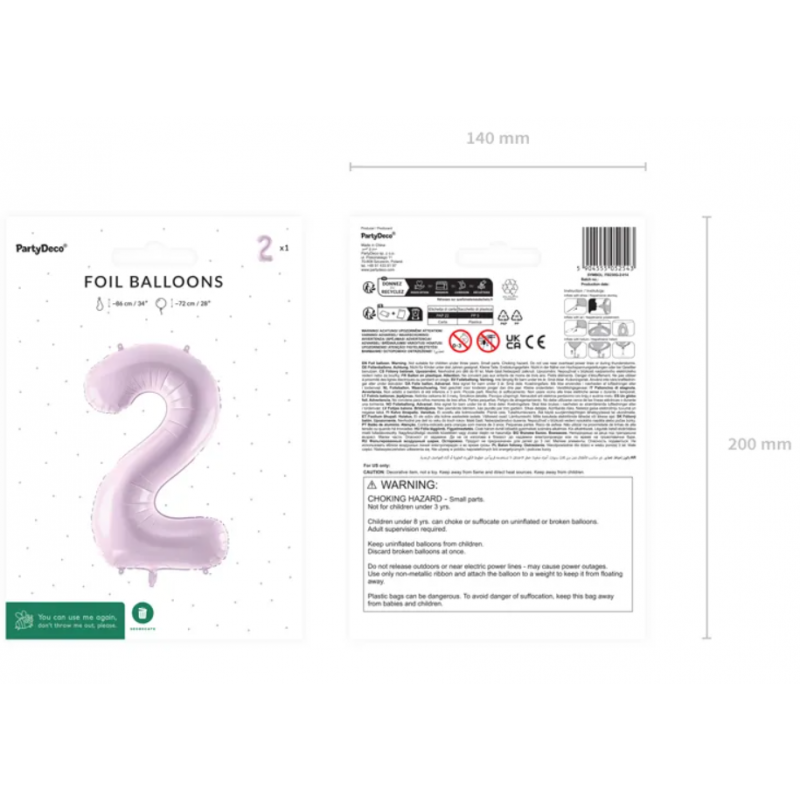 ⭐ Balon foliowy Cyfra 2 - ok. 72 cm (ok. 86 cm przed napompowaniem) - fiolet - 2 sztuki