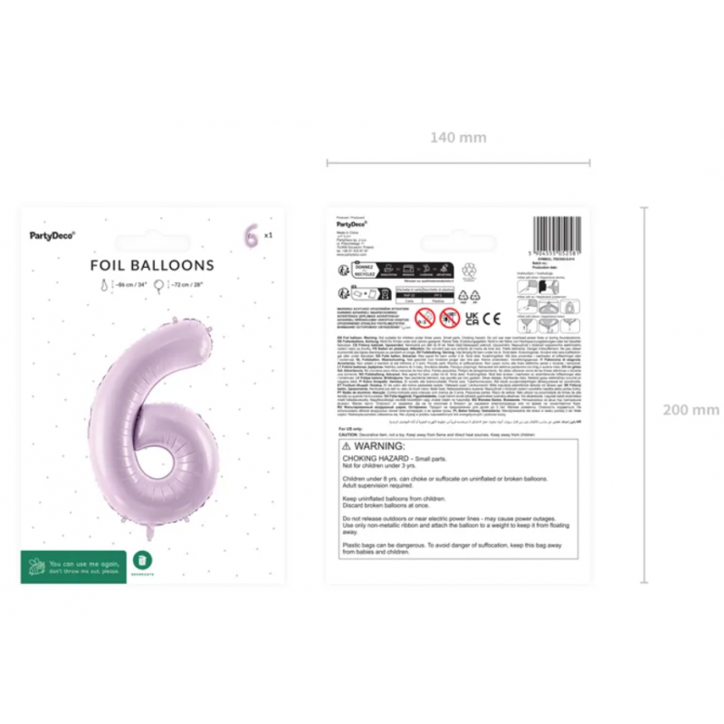 ⭐ Balon foliowy Cyfra 6 - ok. 72 cm (ok. 86 cm przed napompowaniem) - fiolet - 1 sztuka