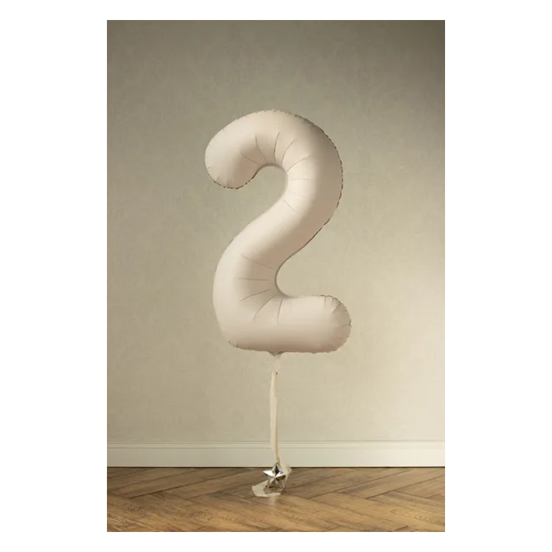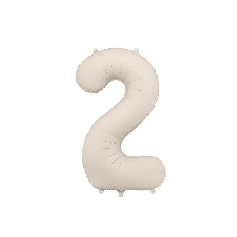 ⭐ Balon foliowy Cyfra 2 - ok. 86 cm (ok. 100 cm przed napompowaniem) - jasny beżowy matowy - 2 sztuki