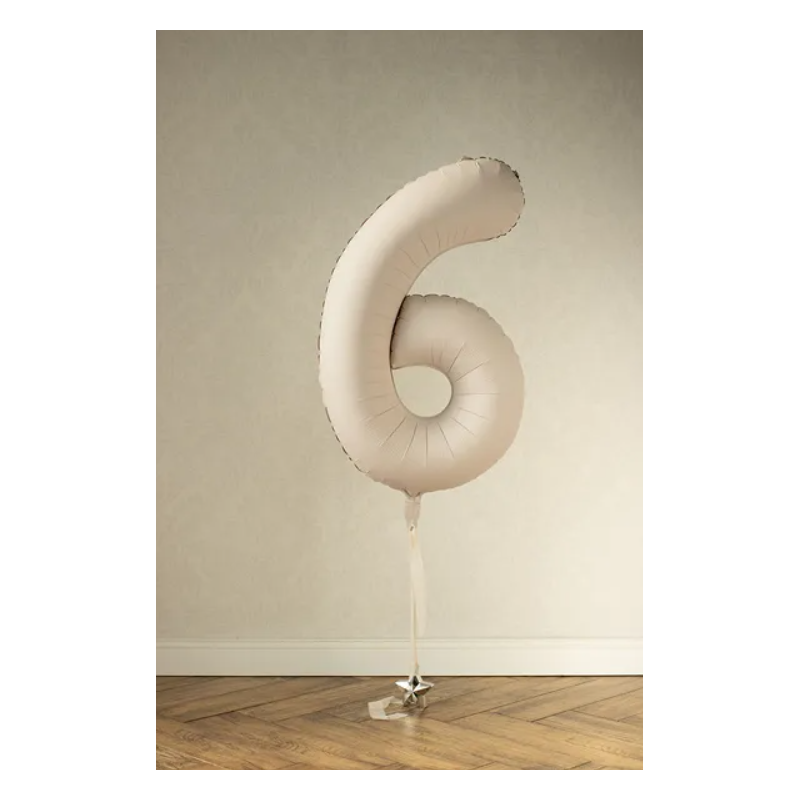 ⭐ Balon foliowy Cyfra 6 - ok. 86 cm (ok. 100 cm przed napompowaniem) - jasny beżowy matowy - 1 sztuka