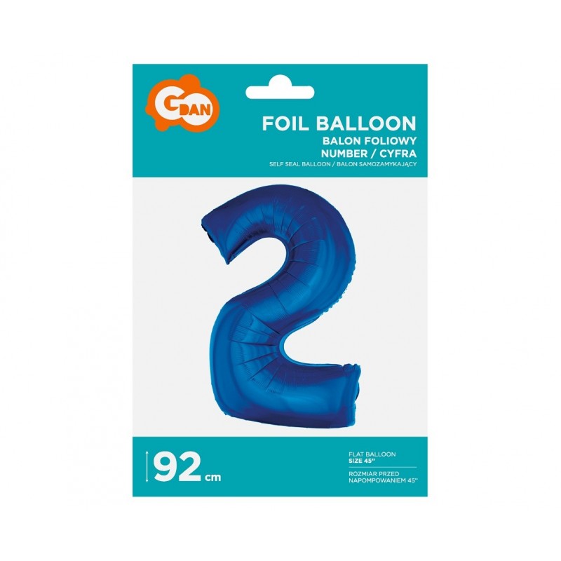 ⭐ Balon foliowy Cyfra 2 - ok. 92 cm - niebieski granatowy - 2 sztuki