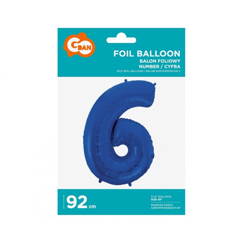 ⭐ Balon foliowy Cyfra 6 - ok. 92 cm - niebieski granatowy