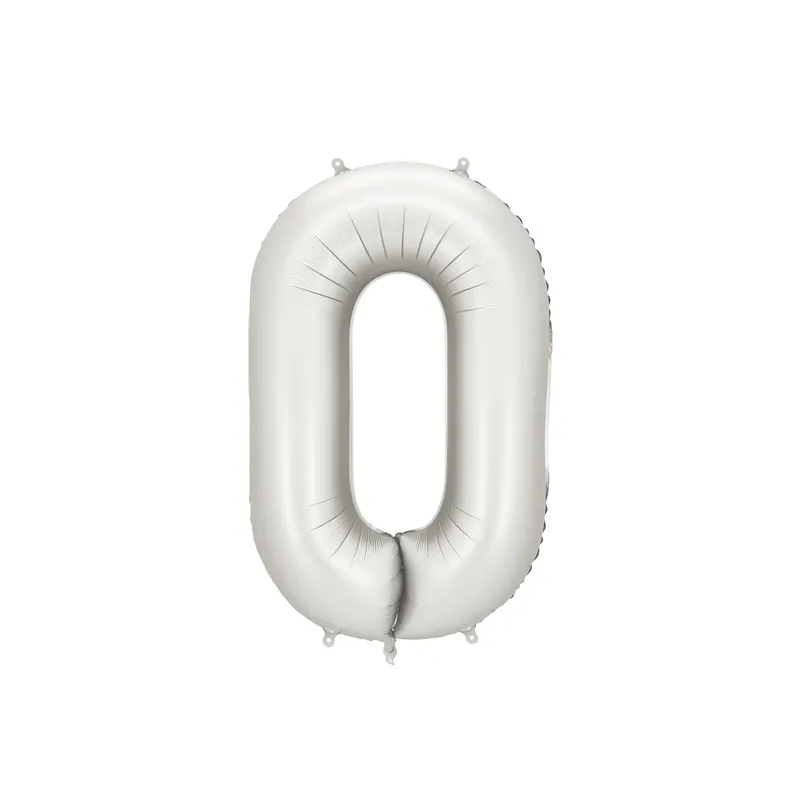 ⭐ Balon foliowy Cyfra 0 - ok. 86 cm (ok. 100 cm przed napompowaniem) - srebrny satynowy - 1 sztuka