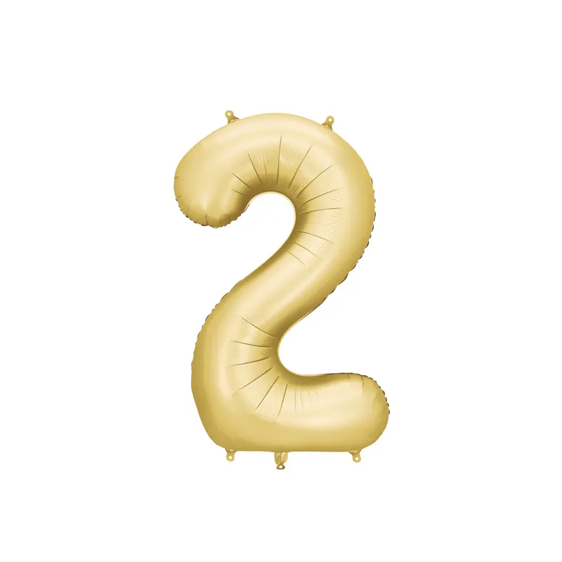 ⭐ Balon foliowy Cyfra 2 - ok. 86 cm (ok. 100 cm przed napompowaniem) - złoty satynowy - 2 sztuki