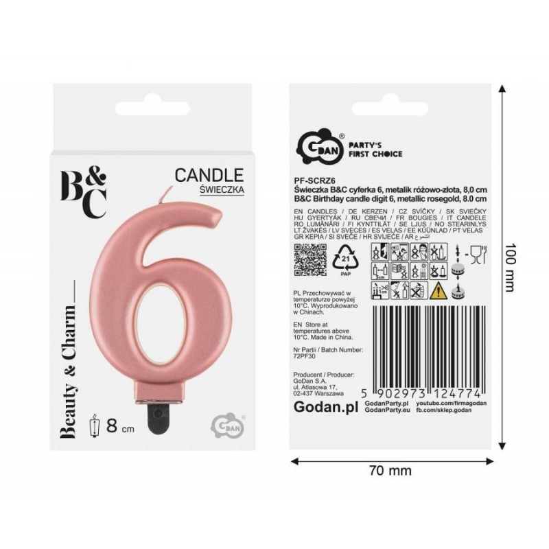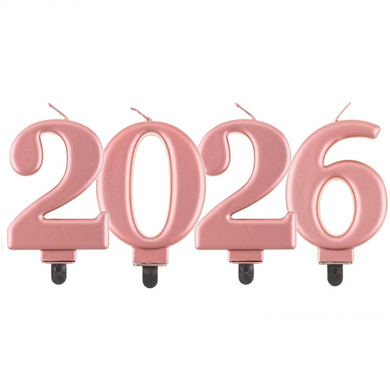 ŚWIECZKI RÓŻOWOZŁOTE - NOWY ROK ! - 2026 - ok. 8 cm