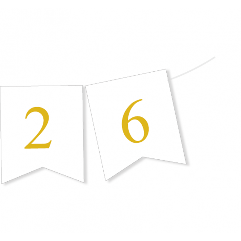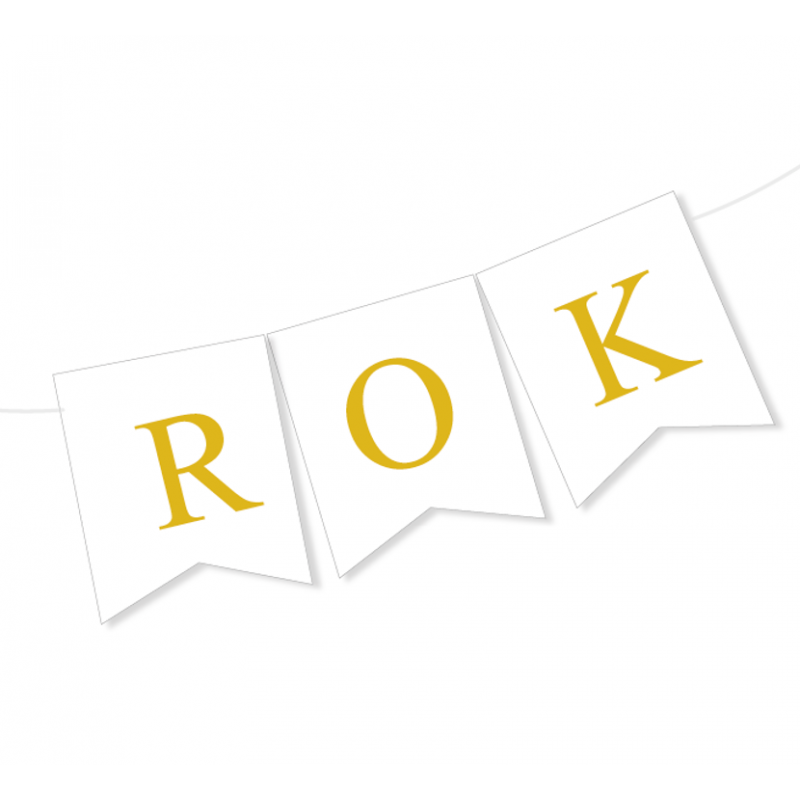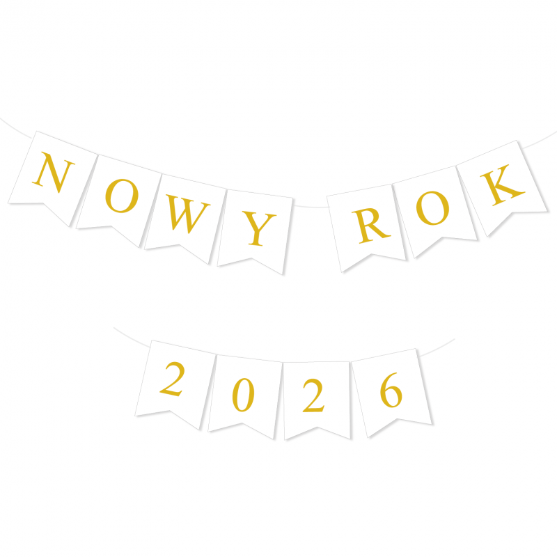 Zestaw obejmuje 11 papierowych proporczyków i 4 m białej wstążki.