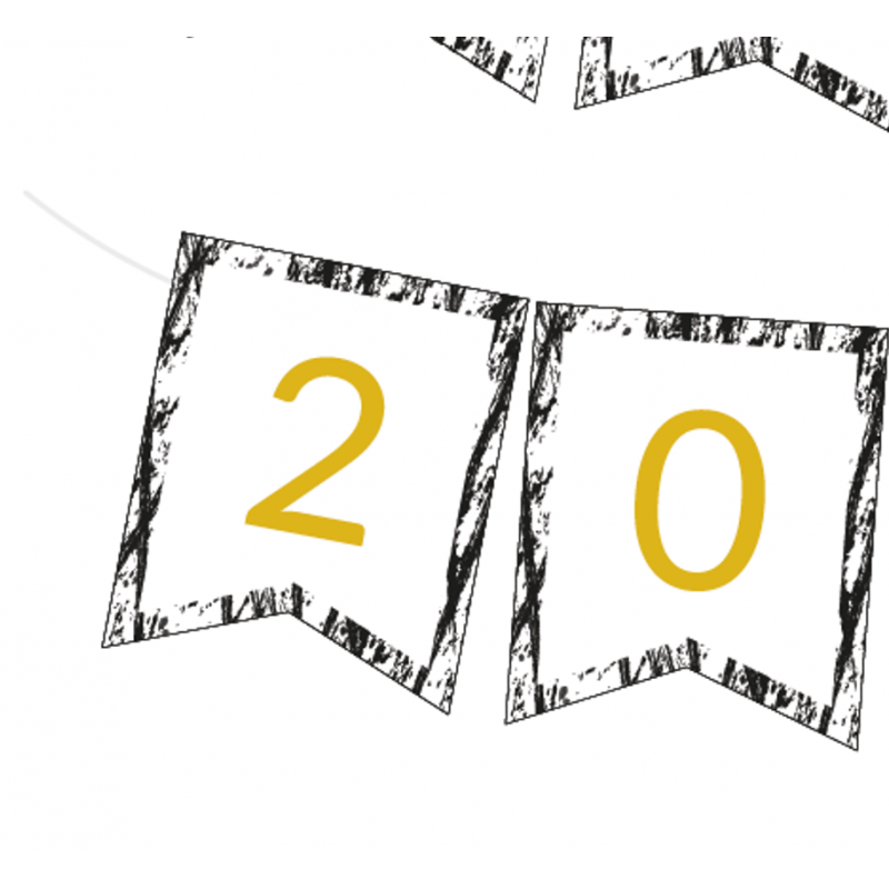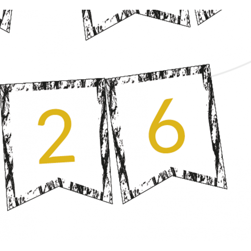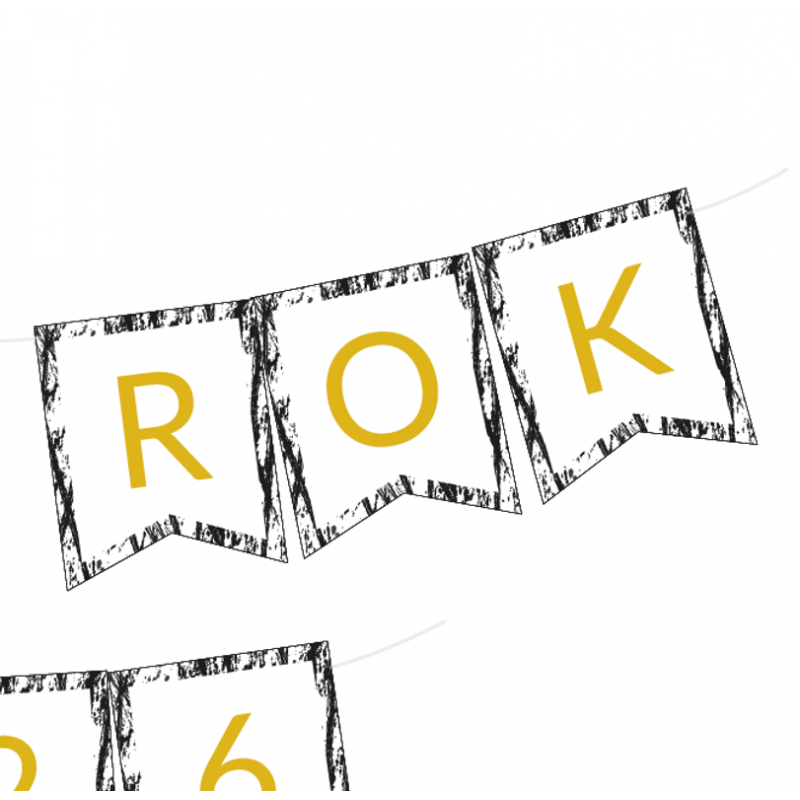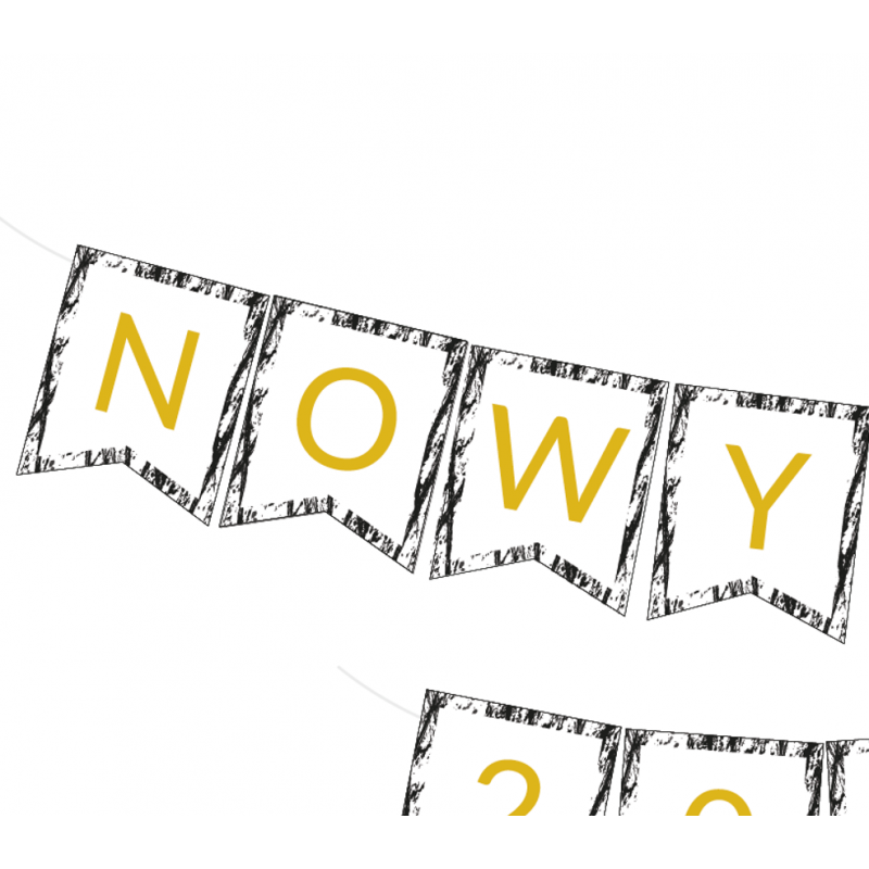 Zestaw obejmuje 11 papierowych proporczyków i 4 m białej wstążki.