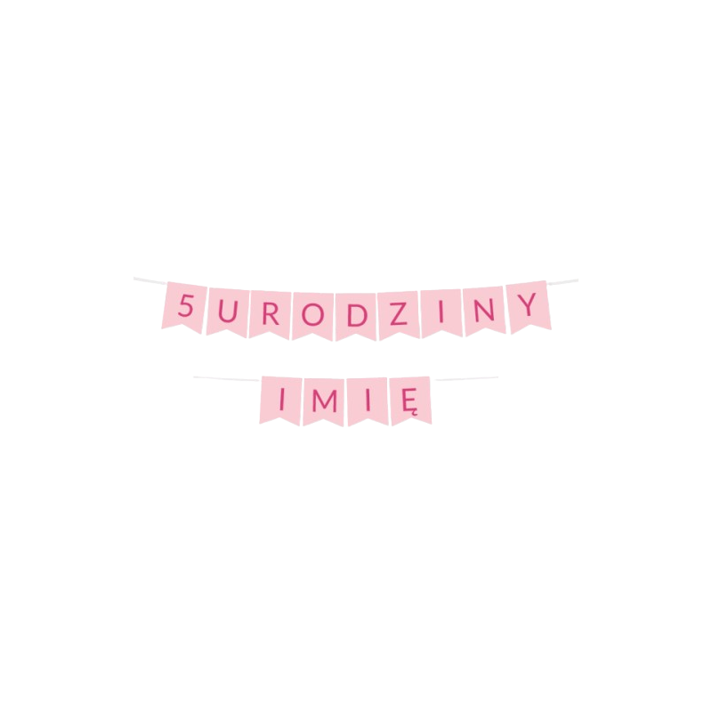 ⭐Girlanda "5 URODZINY + IMIĘ" różowy napis na różowym papierze - 1 sztuka