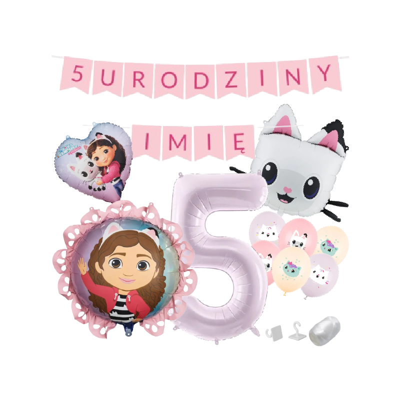 ⭐Zestaw na 5 URODZINY + IMIĘ - KOCI DOMEK GABI⭐
