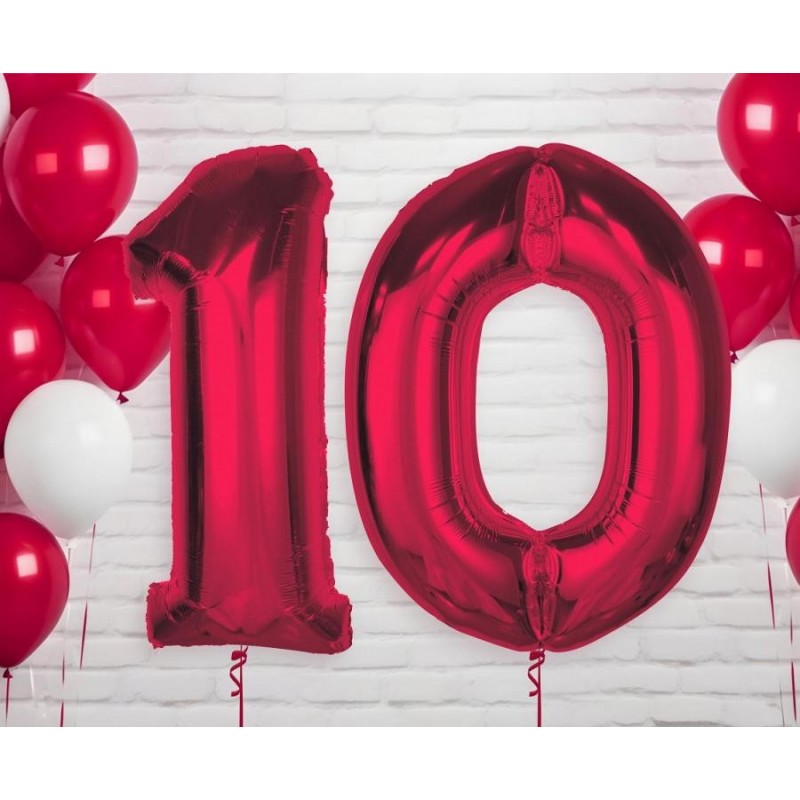 Balon foliowy w kształcie 0 w kolorze czerwonym.