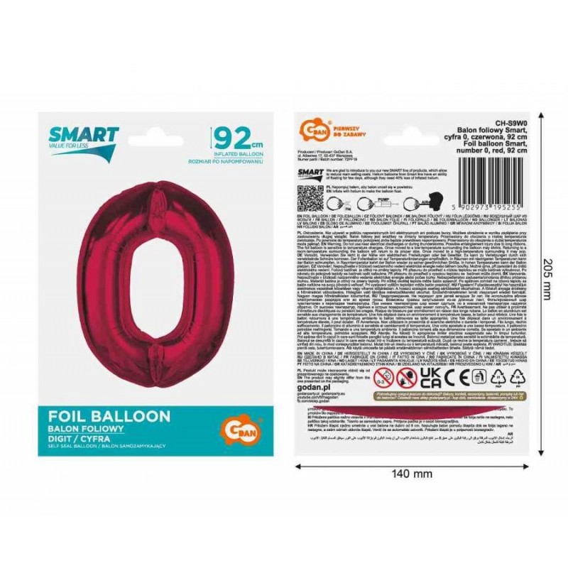 Balon foliowy Smart Cyfra 0 - 92 cm - czerwona