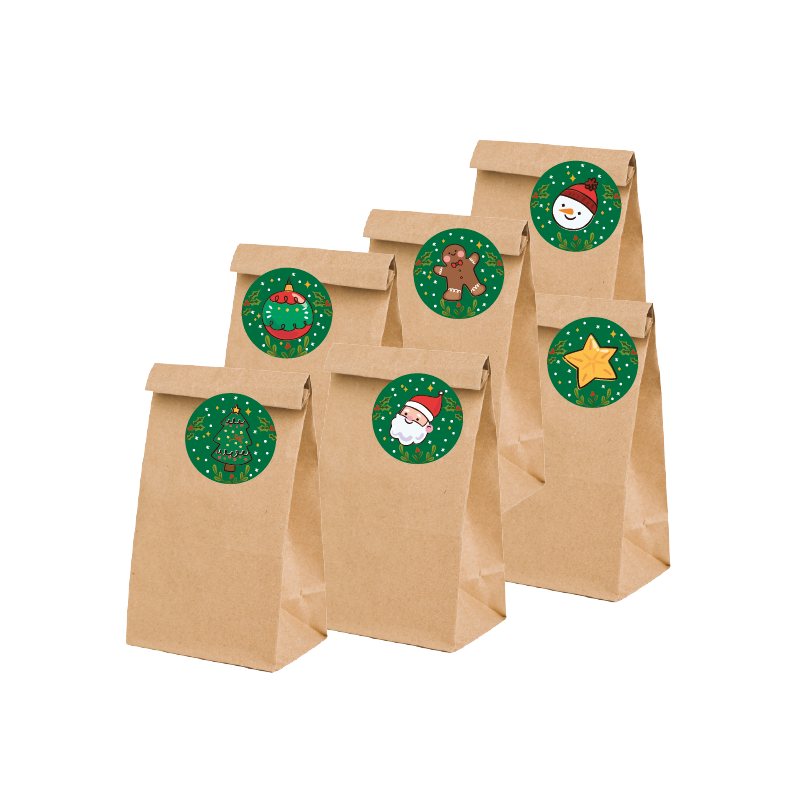 Torebki na upominki 6 sztuk + naklejki MIKOŁAJ - 4cm - zielone