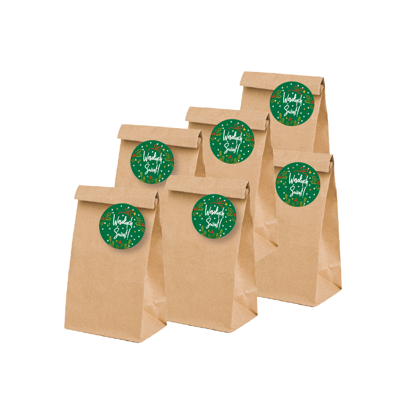 Torebki na upominki 6 sztuk + naklejki WESOŁYCH ŚWIĄT - 4cm - zielone