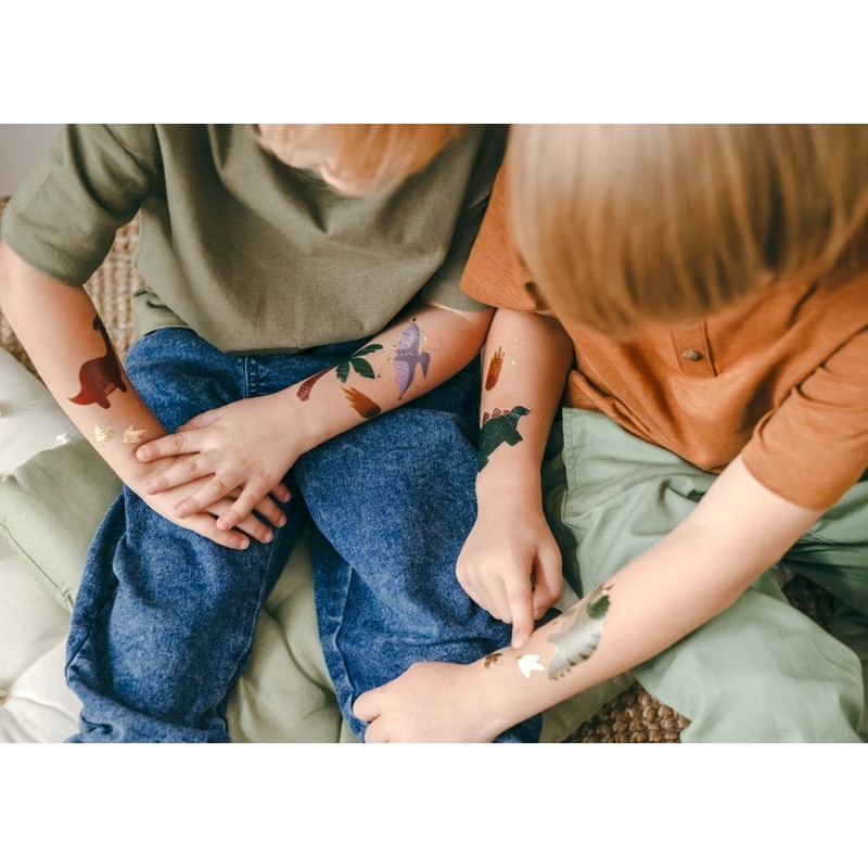 Tatuaże zmywalne Dinozaury, mix wzorów i kolorów, zestaw zawiera 13 różnych wzorów. (1 op. / 13 szt.)
