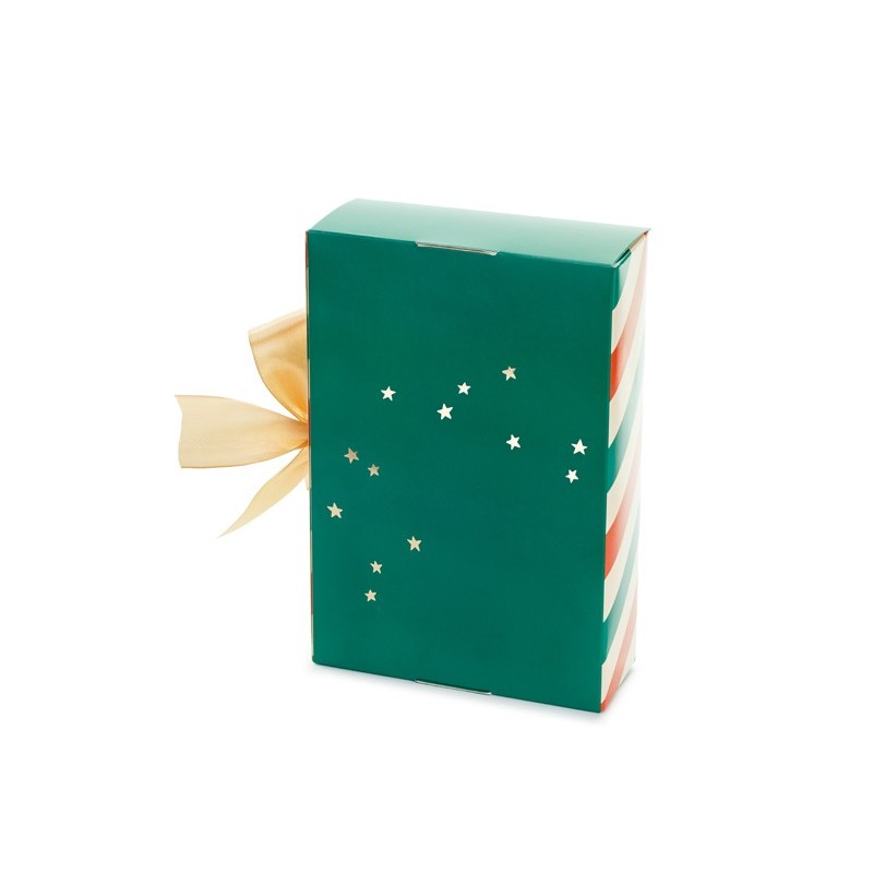 Pudełko na prezenty Mikołaj, mix kolorów ze wstążką w kolorze złotym, wymiary po złożeniu ok. 6 x 22.5 x 15 cm. Produkt samodzielnego złożenia.