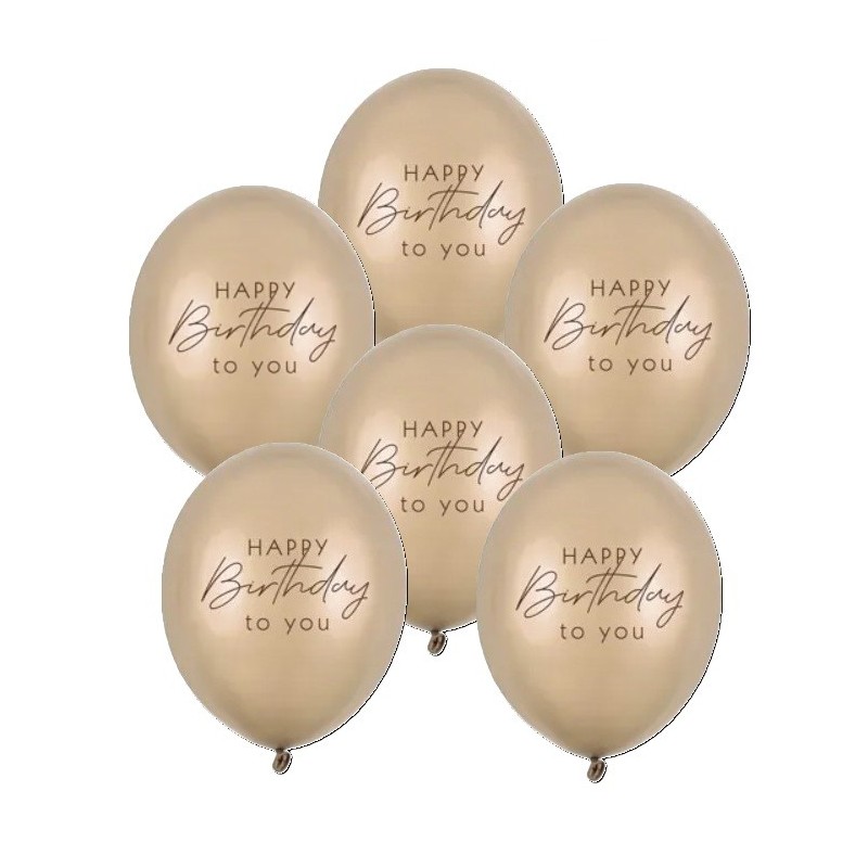 Balony nadruk 30 cm Happy Birthday - Metallic Cold Gold - 6 sztuk