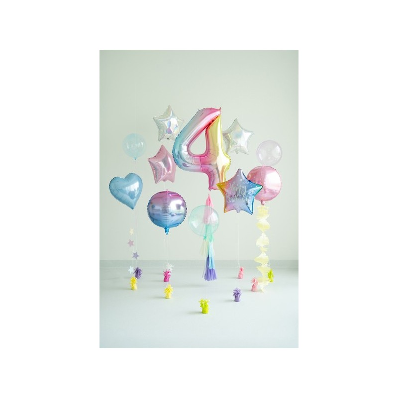 Balon foliowy w kształcie 4 w kolorze pastelowym tęczowym.