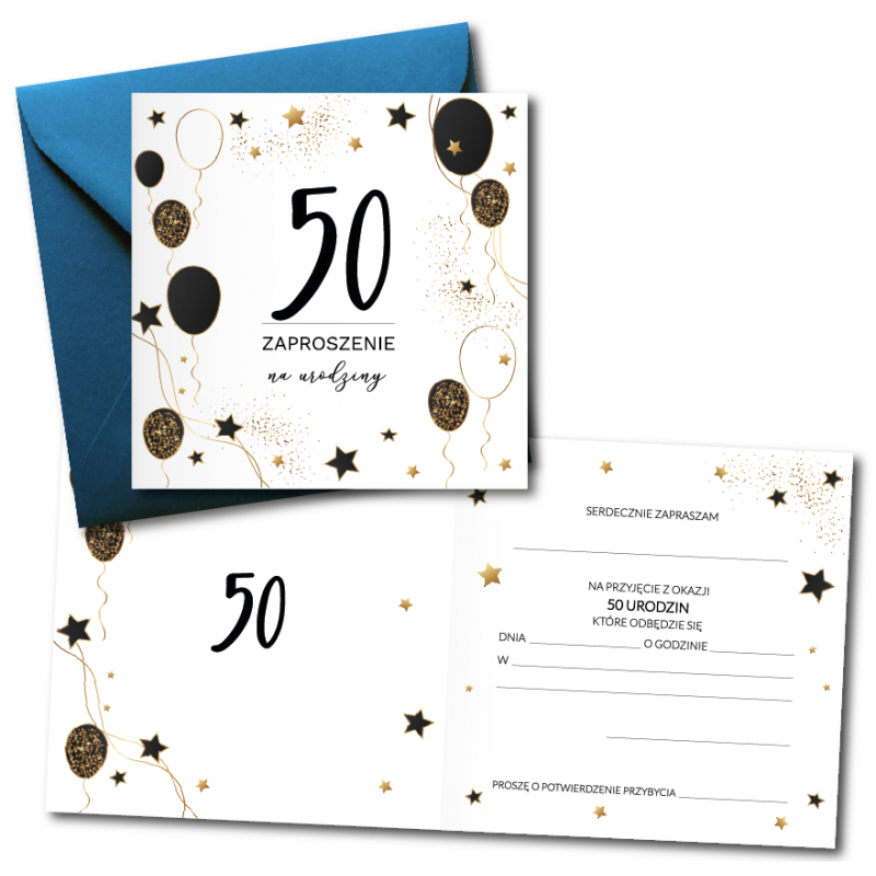 Zaproszenie do wypisania na 50 URODZINY - Balony