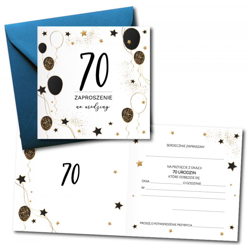 Zaproszenie do wypisania na 70 URODZINY - Balony