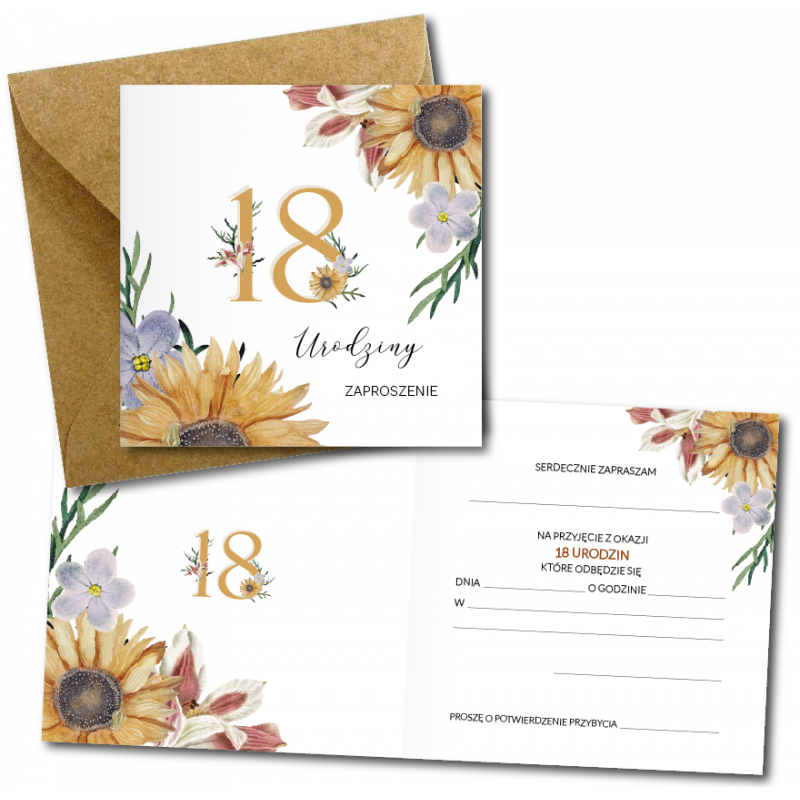 Zaproszenie do wypisania na 18 URODZINY - Słoneczniki