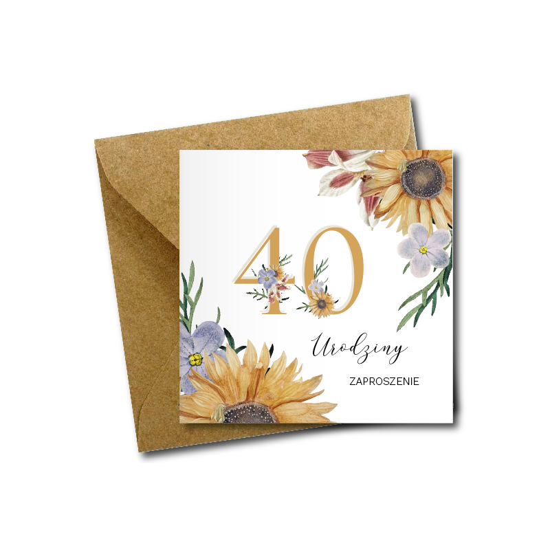 Zaproszenie do wypisania na 40 URODZINY - Słoneczniki