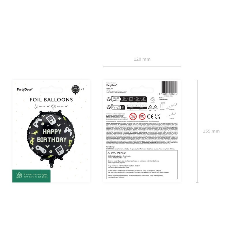 Balon foliowy pastylka Happy Birthday, Game, 35x35 cm