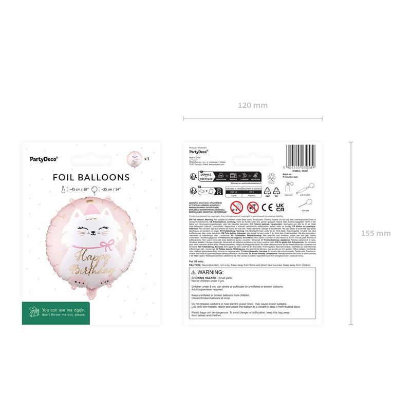 Balon foliowy pastylka Happy birthday, Kotek, 35x35 cm