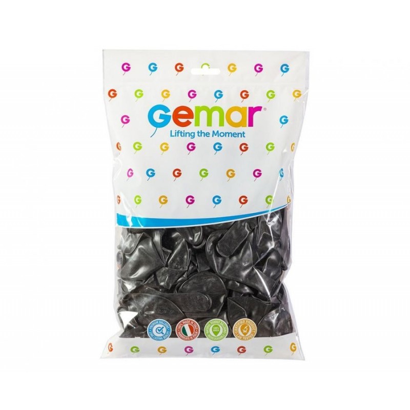 Balony metaliczne Gemar 30 cm - 12" - METALICZNE czarne GM110/65 - 100 sztuk