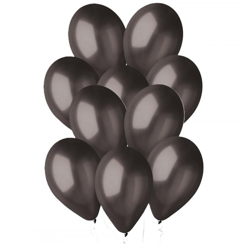 Zestaw 10 sztuk wysokiej jakości balonów lateksowych w kolorze czarnym metalicznym.