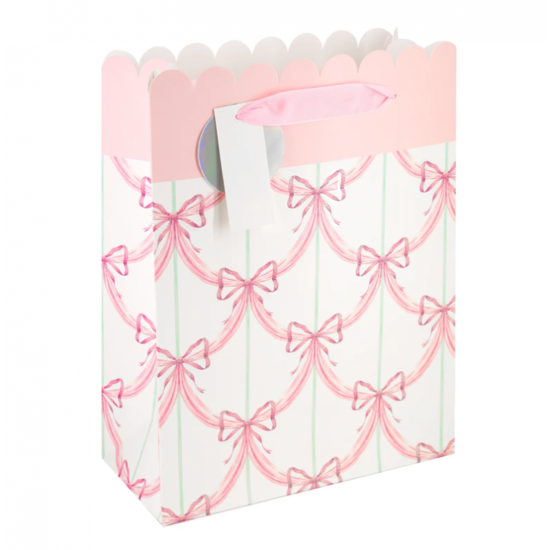 Torebka na prezenty kokardki pastelowa mała - różowa