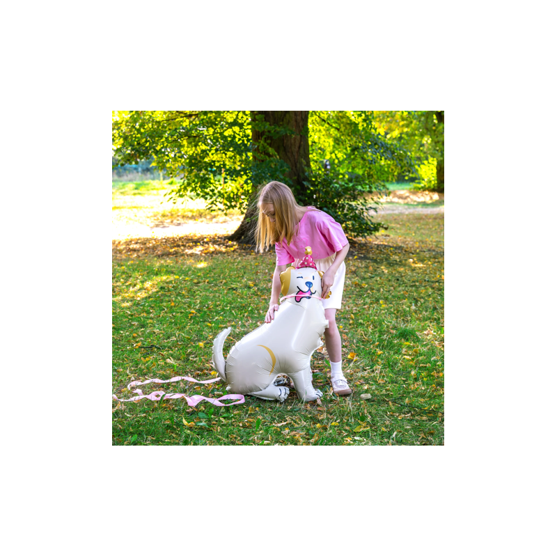 Balon foliowy stojący Pies Golden z czapeczką 76x96 cm